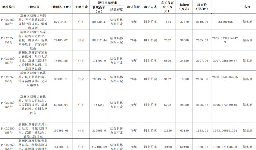 11月3日,武汉市拍卖出让国有建设用地使用权公告武告字(2025年)25号发布,公告显示,武汉市自然资源和城乡建设局决定以拍卖方式出让12宗地块的国有建设用地使用权