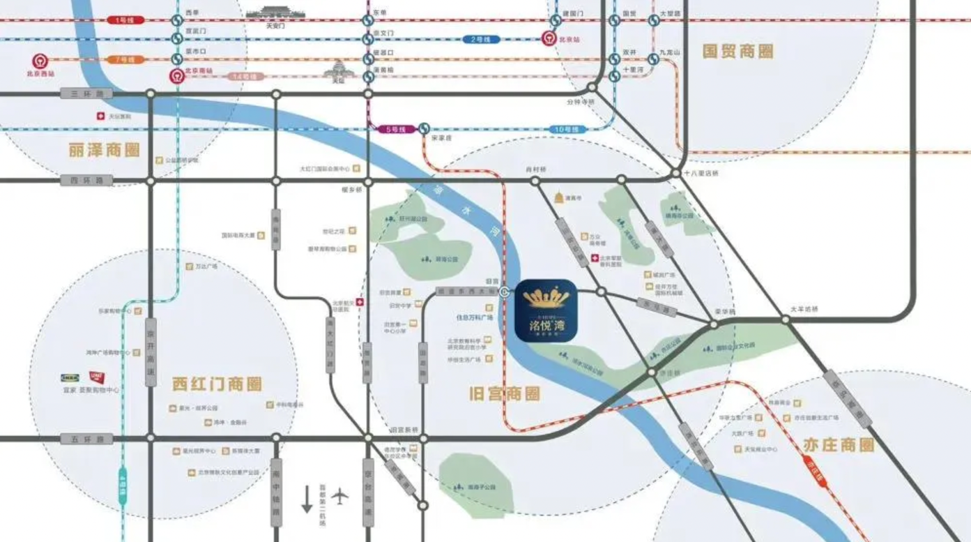 从地理位置上来讲,旧宫地块环线不差,临地铁,有商业,自带教育配套,有公园+水景。重要的是,价格太有竞争力,向北借光北京金茂府,向南吊打瀛海三项目。沿亦庄线北上,仅4站便是宋家庄站,与10号线,5号线换乘。向西跨过凉水河,朗润园、紫郡府、富力盛悦居等2013年左右的次新房,均价已在5-6.4万/㎡之间。相比之下洺悦湾最大的优势就是性价比。