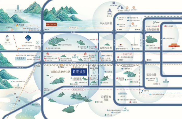 医疗:解放军总医院301医院、302医院、空军总医院等一流医疗机构;天坛医院、北京石景山医院,能满足业主的日常就医需求。