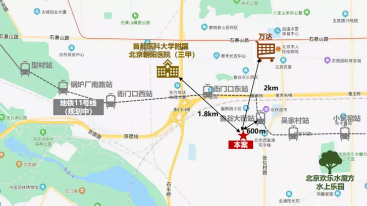 教育:距离市重点幼儿园石景山实验幼儿园直线距离约3.7公里;直线距离约450米可达北京爱乐实验小学;北侧直线距离约1.5公里即可到达京源学校,直线距离约2.5公里可达北京十一学校,项目周边教育资源比较丰富,将来入学应该不是问题。