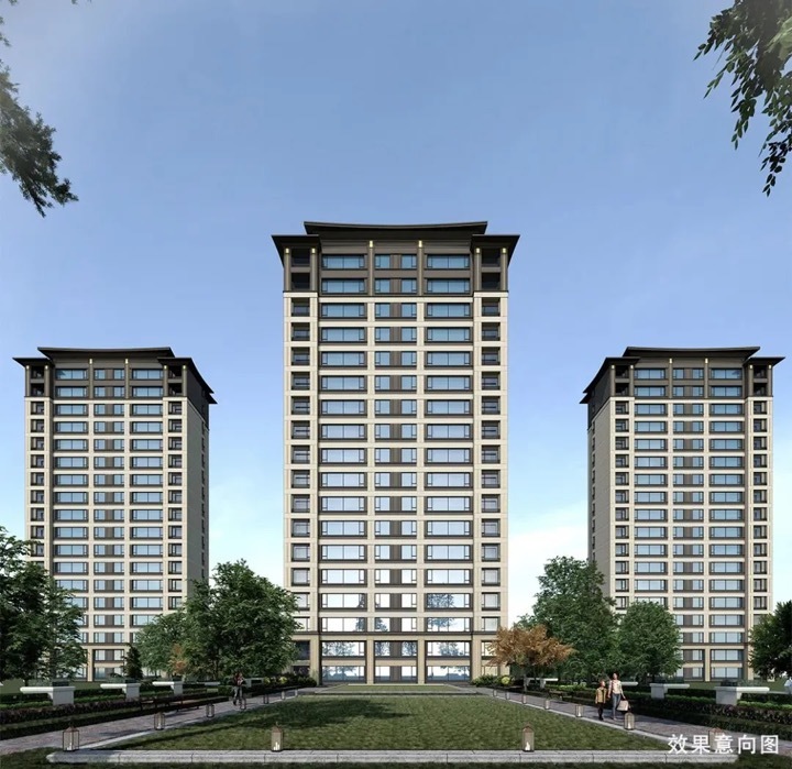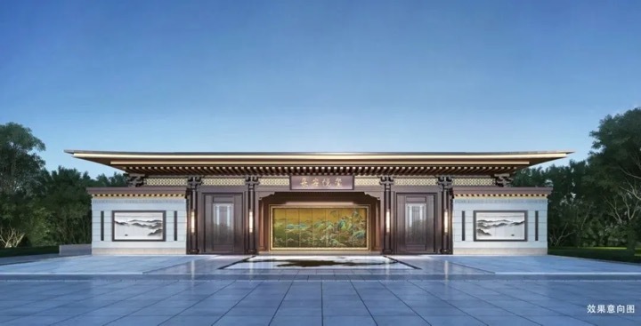 从大门和外立面效果图来看,项目与“长安和玺”类似,都是现代中式风格。