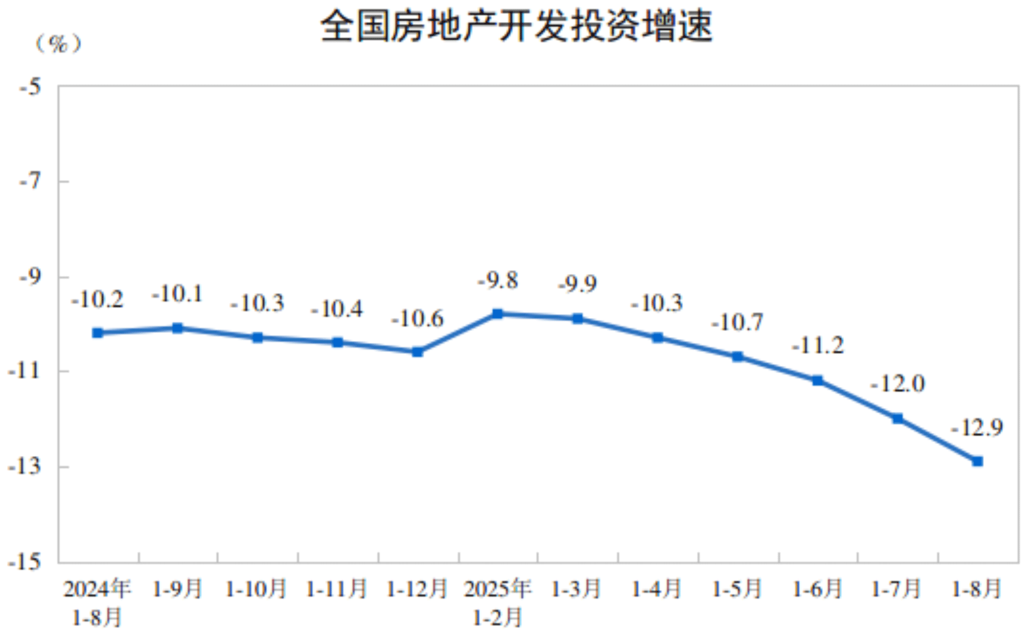 9月15日,国家统计局公布的全国房地产市场基本情况显示,1-8月份全国房地产开发投资60309亿元,同比下降12.9%;新建商品房销售面积57304万平方米,同比下降4.7%;新建商品房销售额55015亿元,下降7.3%。