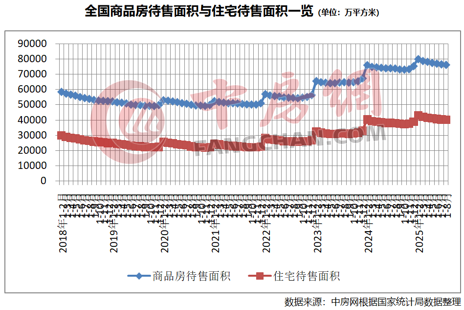 商品房库存方面,连续六个月减少。截至8月末,商品房待售面积76169万平方米,比7月末减少317万平方米。其中,住宅待售面积40229万平方米,减少307万平方米。