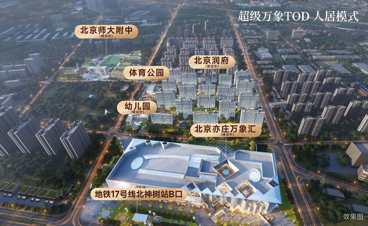 北京润府以超级万象TOD为底盘,将繁华商业、公园乐活、轨道交通与菁英教育高效折叠,嵌入步行半径。约1.3万㎡体育公园,成为家门口的“多巴胺磁场”;一路之隔的北师大附中,铺就目送式成长路径;约18.8万㎡北京亦庄万象汇潮聚消费新场景,将灵感购物与松弛社交融入日常;地铁17号线无缝接驳归家动线,让通勤变为惬享漫步的愉悦体验。