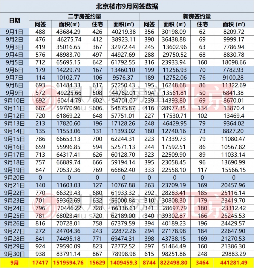 具体来看,北京9月新建商品房共成交8744套,网签面积约82.25万平方米。新建商品房住宅成交总套数为3464套,环比上涨10.49%,同比上涨7%;网签面积约44.13万平方米。