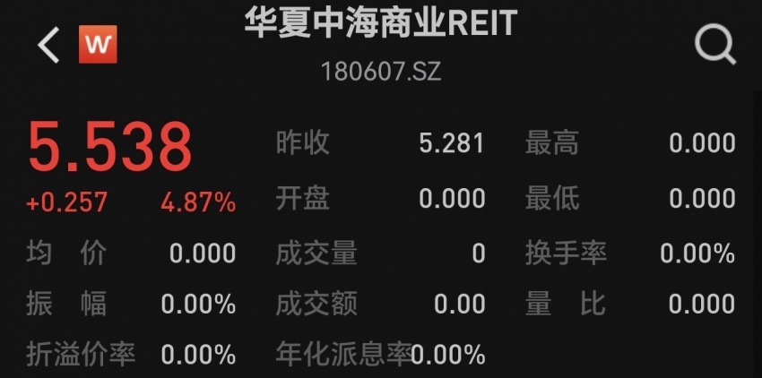 凤凰网风财讯报道 2025年10月31日,华夏中海商业资产封闭式基础设施证券投资基金(基金代码:180607,简称华夏中海商业REIT)在深交所成功上市,上市首日开盘即涨,盘中涨幅超4.87%,表现十分亮眼。