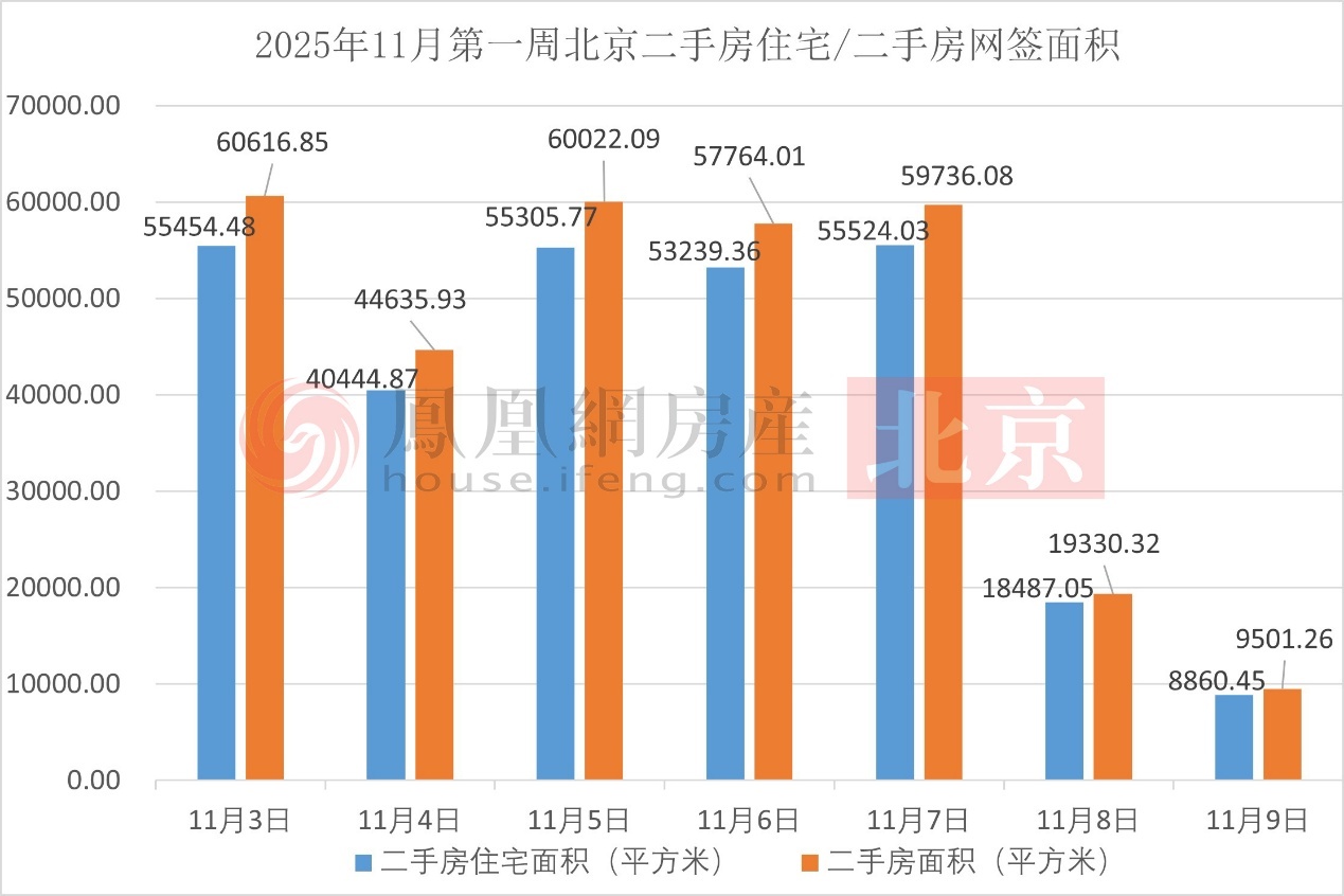 2025年11月第一周北京二手房住宅/二手房网签面积