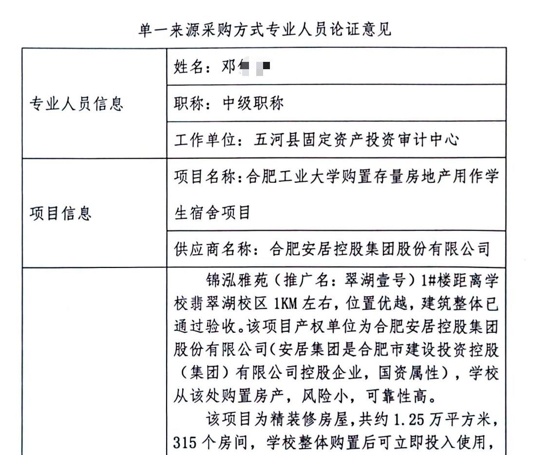 合肥工业大学招标与采购管理中心科室负责人告诉每经记者,这是学校首次对外购置存量房地产用作学校宿舍,主要原因是响应国家政策,鼓励高校通过购买、租赁学校周边的人才公寓、商住楼等社会用房,补充宿舍资源。