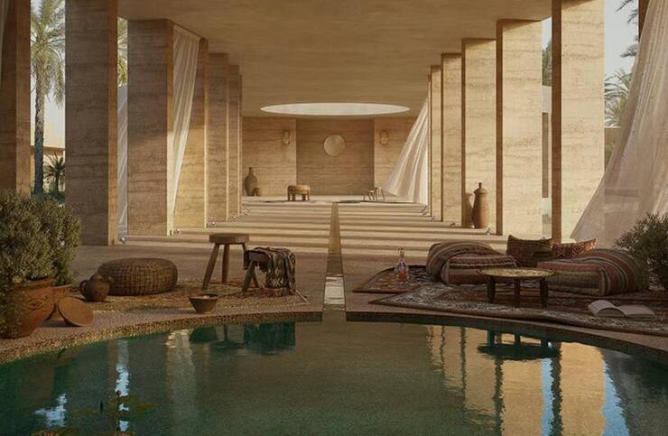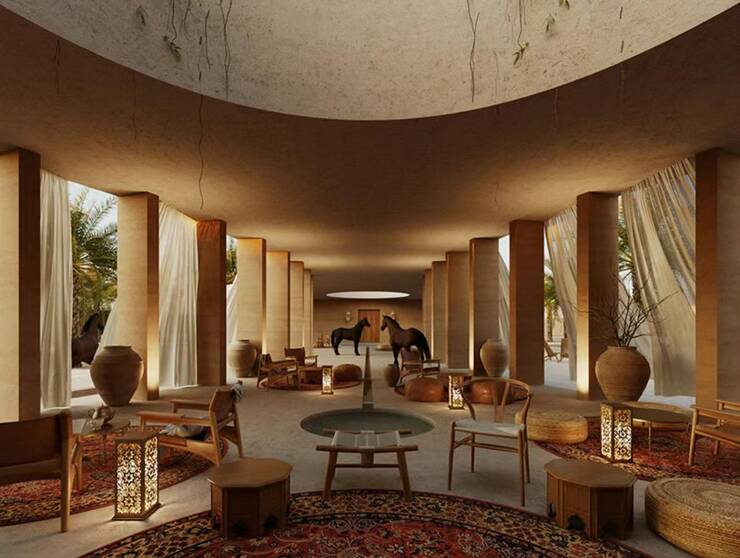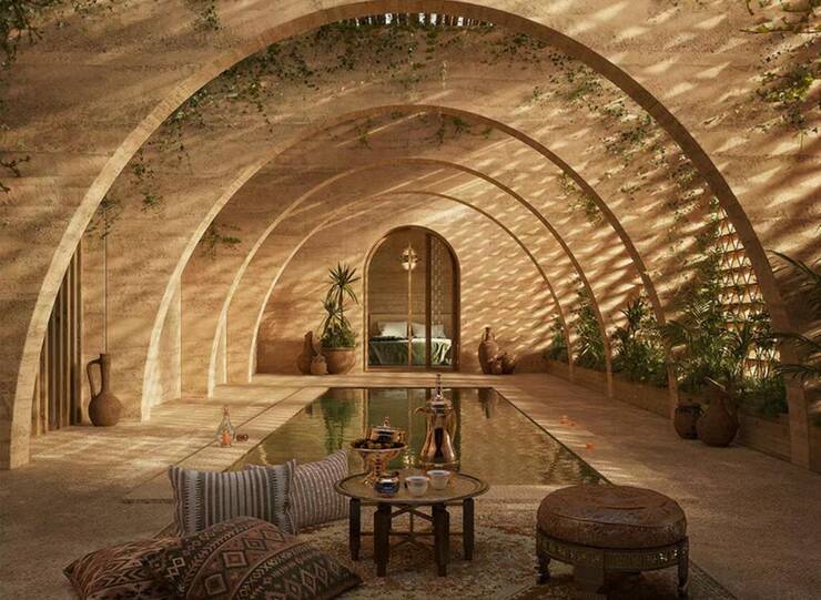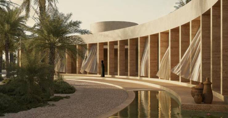建筑借鉴了传统的夯土墙、风斗、阿夫拉吉灌溉系统和棕榈树干屋顶,在保留历史韵味的同时能应对沙漠的严酷气候。