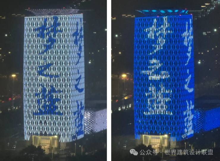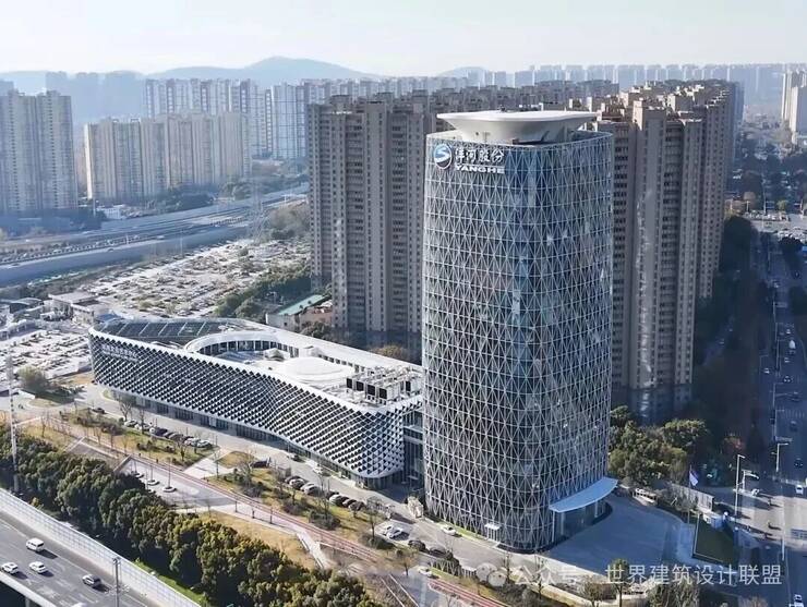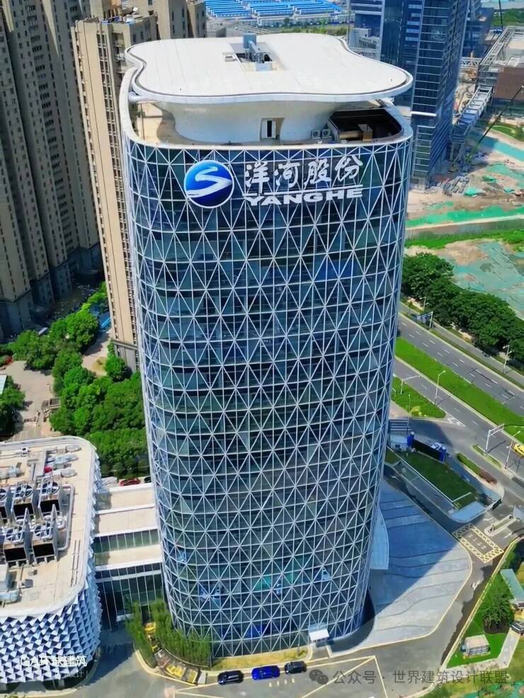 该项目由U+Design事务所担纲设计,整座塔楼运用了品牌最具代表性的海洋蓝、天蓝与梦幻蓝三种核心色彩,外立面在日光与灯影间流转变化,仿佛波光闪烁,暗合酒液流动的意象。建筑师从品牌精髓中汲取多元灵感。塔楼的曲线借鉴了酒瓶瓶身的设计,整体外观则像一艘旗舰,寓意着洋河将从新的起点奋发向上,进一步展现国际化、时尚化的品牌新高度。
