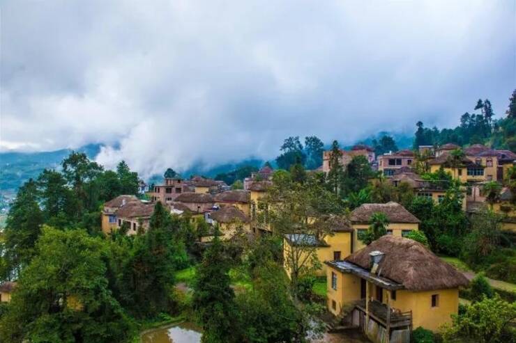 但由于各种灾害和战争,哈尼先民不得不几次重建家园,随着先民的继续南迁,哈尼先民才建成了新式样的蘑菇房。 这种蘑菇房,不仅美观,而且很实用,冬暖夏凉,经久耐用。