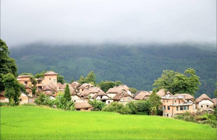蘑菇房因其四面坡的茅草顶,状如蘑菇,被人们称为“蘑菇房”,姜文导演的电影《太阳照常升起》就是在哈尼族拍摄的,《无问西东》中,黄晓明带着章子怡“返乡务农”,哈尼族的蘑菇房一次次地出现在镜头里。