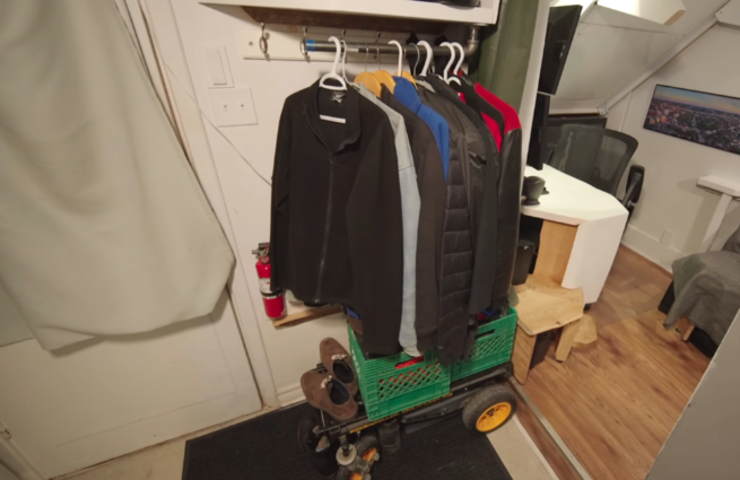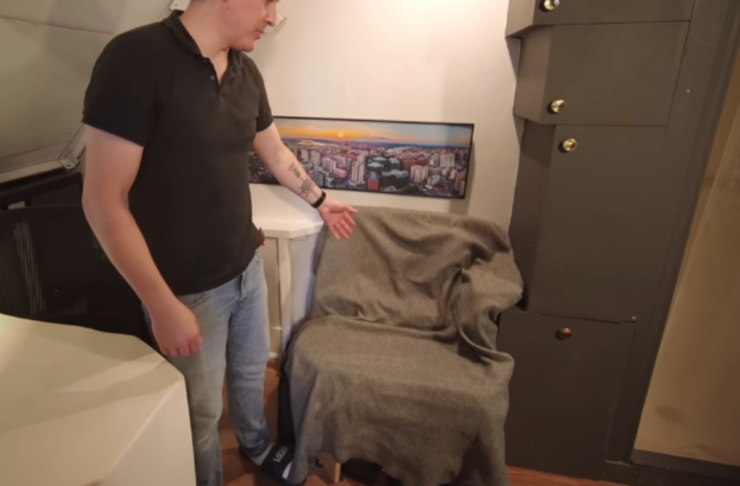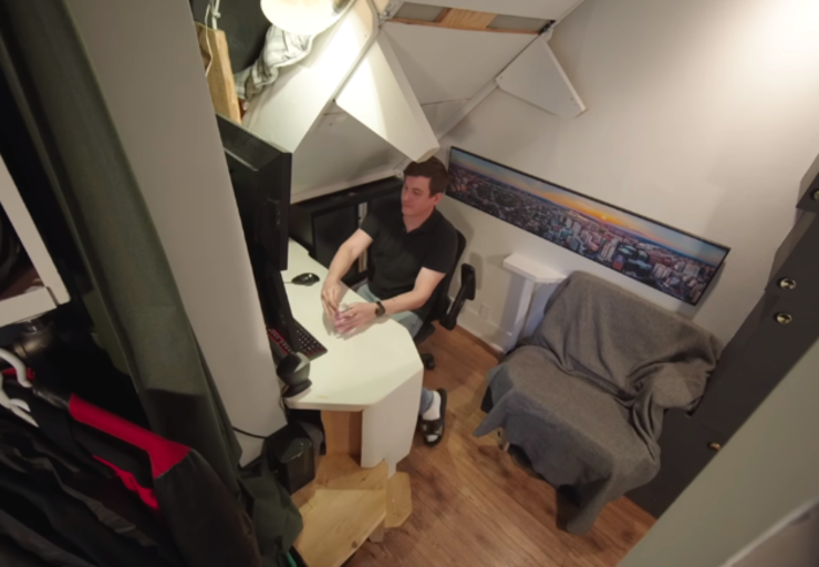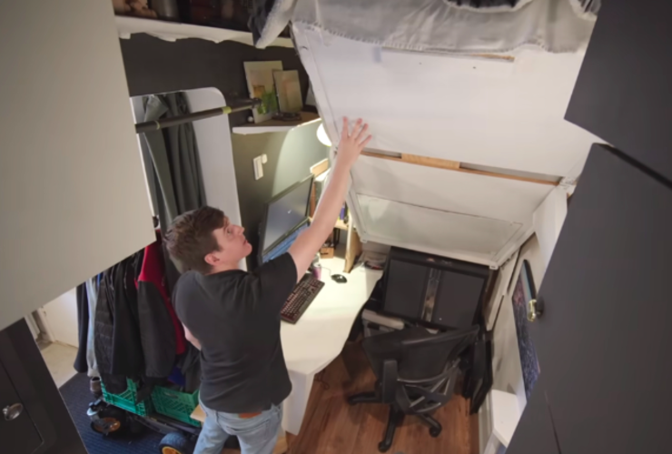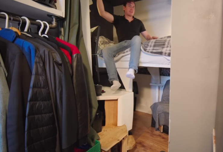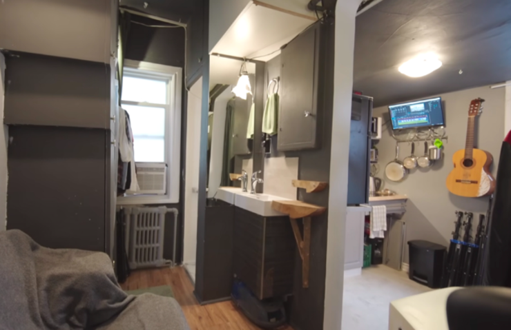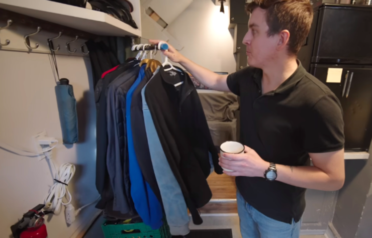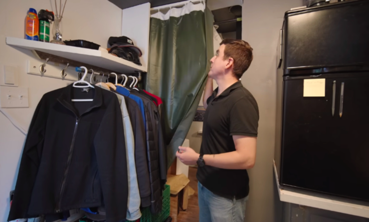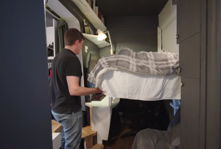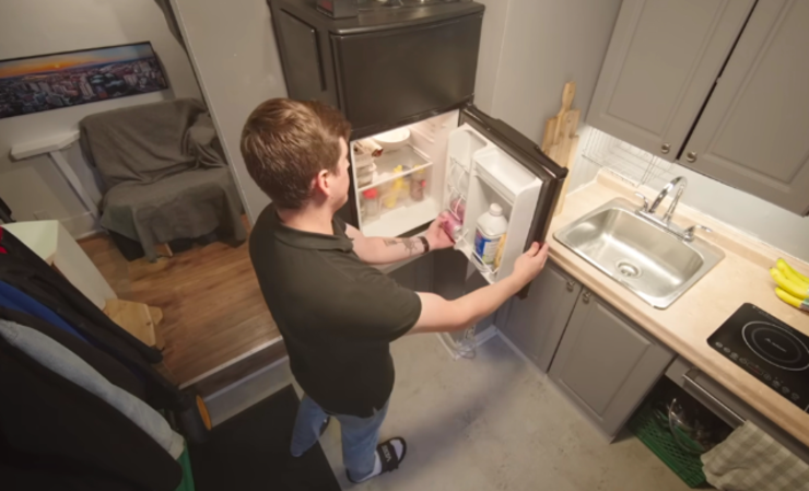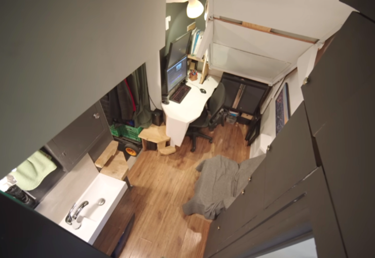 若让你在一间只有10㎡的蜗居里住上4年时间,你能接受吗? 34岁的阿德里安便在4年前住进了这样一间蜗居里,它面积只有110平方英尺,换算一下差不多是10㎡多一点点。