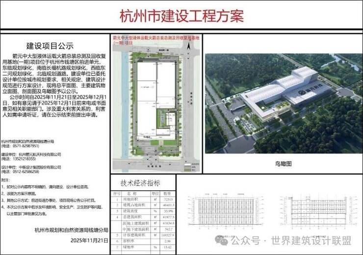 近日,据杭州市规划和自然资源局最新消息,箭元科技打造的“中大型液体运载火箭总装总测及回收复用基地”项目设计方案正式公布。