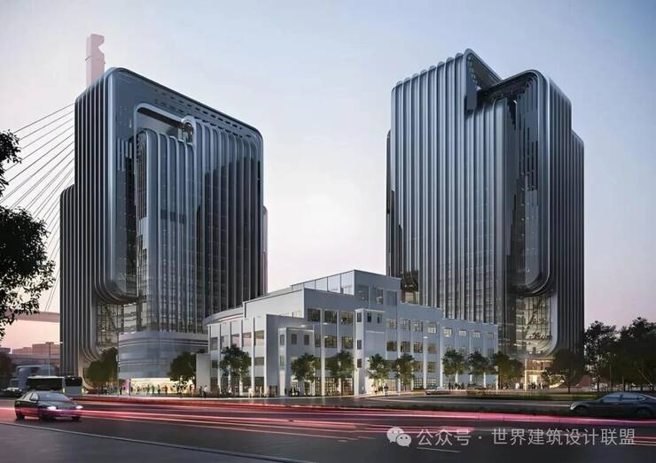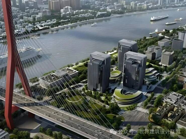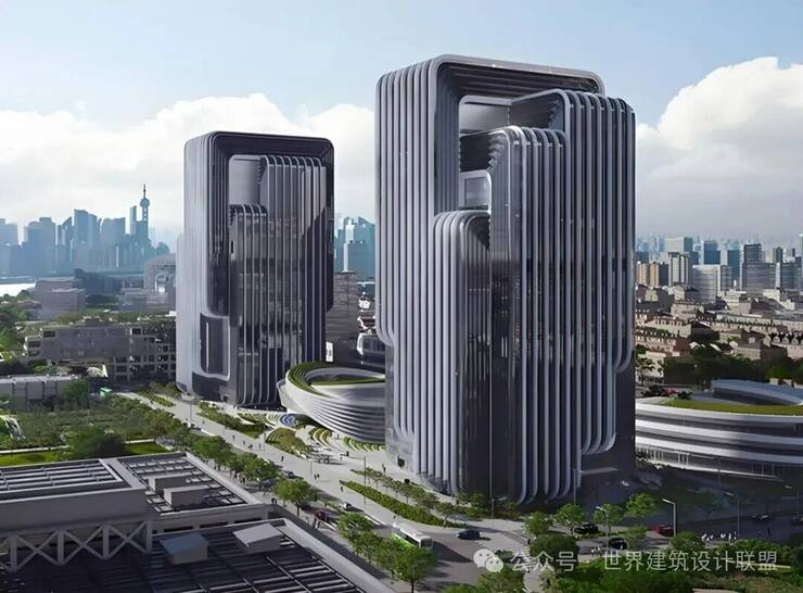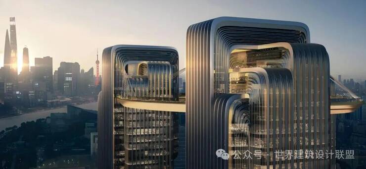 设计团队从中国传统智慧结晶“鲁班锁”中汲取灵感,将解构与重组的概念融入建筑创作,巧妙实现东方营造哲思与现代美学语言的深度交融。建筑外立面以黄浦江蜿蜒流淌的江水形态为意象,以灵动飘逸的流线造型勾勒出建筑轮廓,在理性秩序中蕴含类似“鲁班锁”的精密逻辑与结构趣味。
