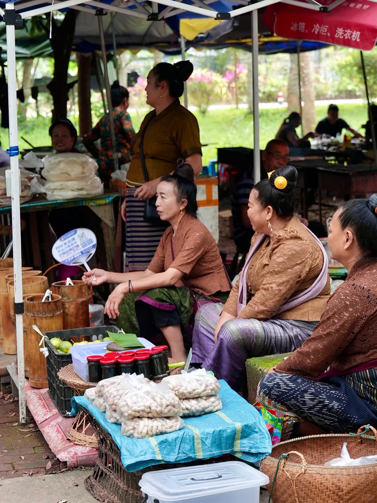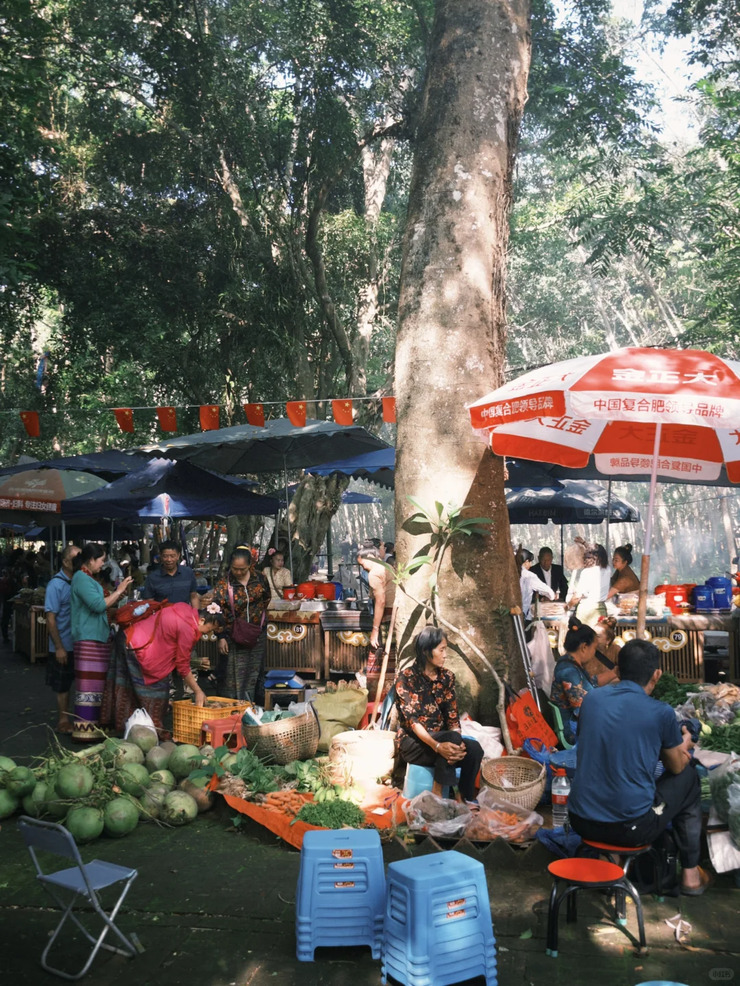 集市被古树、竹林环抱其中,本地人盛装出席,准备好各种本地特色美食,人们来这里相聚,选好美食,便在雨林中慢慢品尝多民族的风味美食,而且不用出国就能尝到老挝的传统美食。(来源:Feekr旅行)