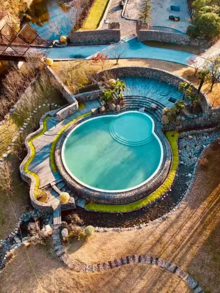 吉乐那度假村用天然石材手工堆砌出这座艺术孤品~像穿越到了欧洲石头村,随手拍都是大片。
