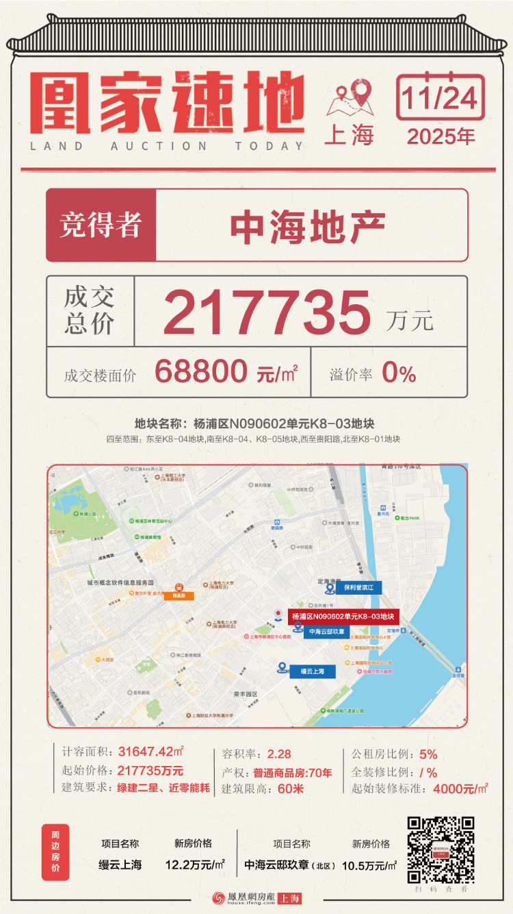 佳运董事长亲自坐镇!24.75亿夺川沙地块,中海抄底杨浦滨江宅地