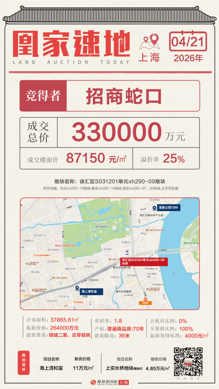 第三批次,招商蛇口成徐汇长桥新“地王”