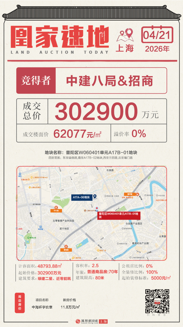 上海土拍又见“地王”:招商82轮溢价25%竞得徐汇长桥